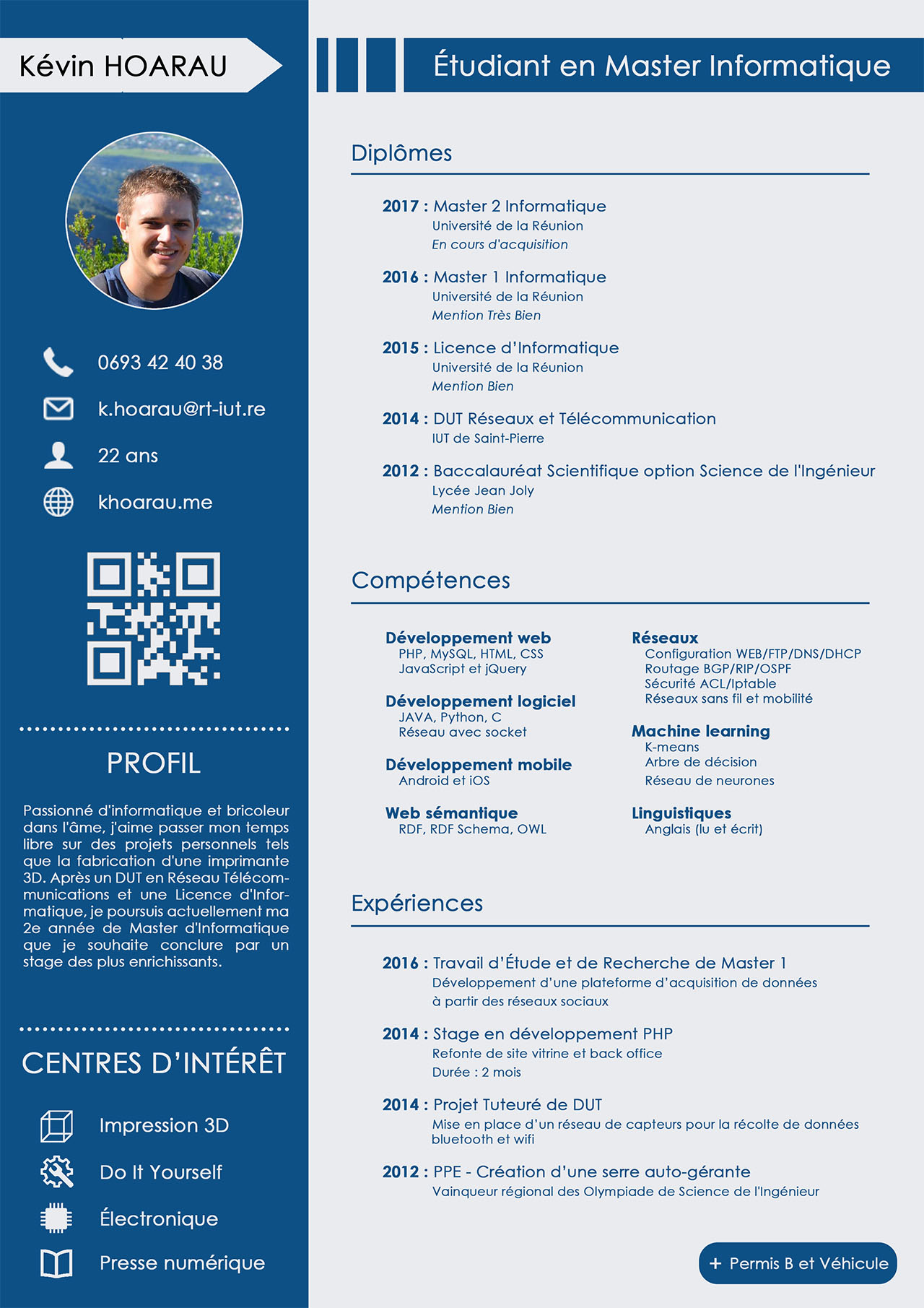 Je m'appelle Kévin HOARAU et je suis étudiant en 2ème année de Master d'Informatique à l'Université de la Réunion.